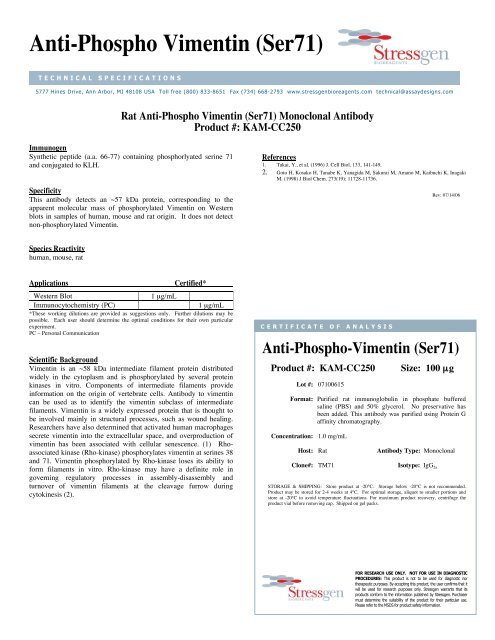 Anti Phospho Vimentin Ser71 Enzo Life Sciences